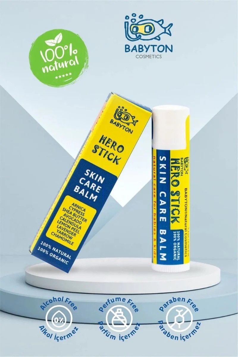 Babyton Hero Stick offers the natural relief your skin needs and is a product you can use with confidence thanks to its natural ingredients. Inspired by the power of nature, this unique stick is poised to become an indispensable part of your daily life for you and your family! It is perfectly safe for use on babies, containing no chemicals or fragrances, and is made entirely from natural and organic ingredients. Its unique formula is free from perfume, alcohol, gluten, parabens, and phthalates, enriched with 100% natural ingredients. Additionally, it is easy to carry in pockets, backpacks, and wallets, making it ideal for children.