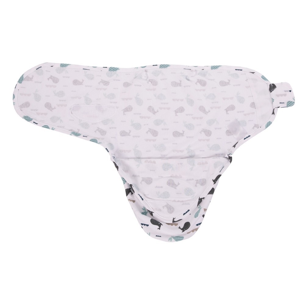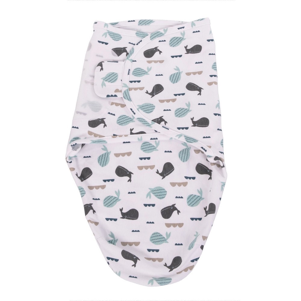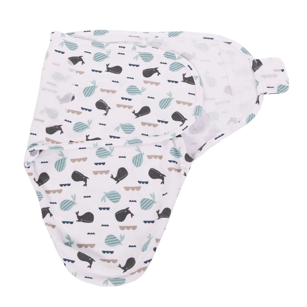 The Wrap Ocean Whales is a cozy 100% cotton wrap blanket featuring a stylish pattern of Ocean Whales, designed specifically for infants in the small size range (3.2 to 6.4 kg), suitable from birth until approximately 4 months. This wrapping blanket, crafted from high-quality cotton, provides a snug and comfortable environment for your little one. Simplifying the process, it offers the easiest way to swaddle your baby in just three simple steps.