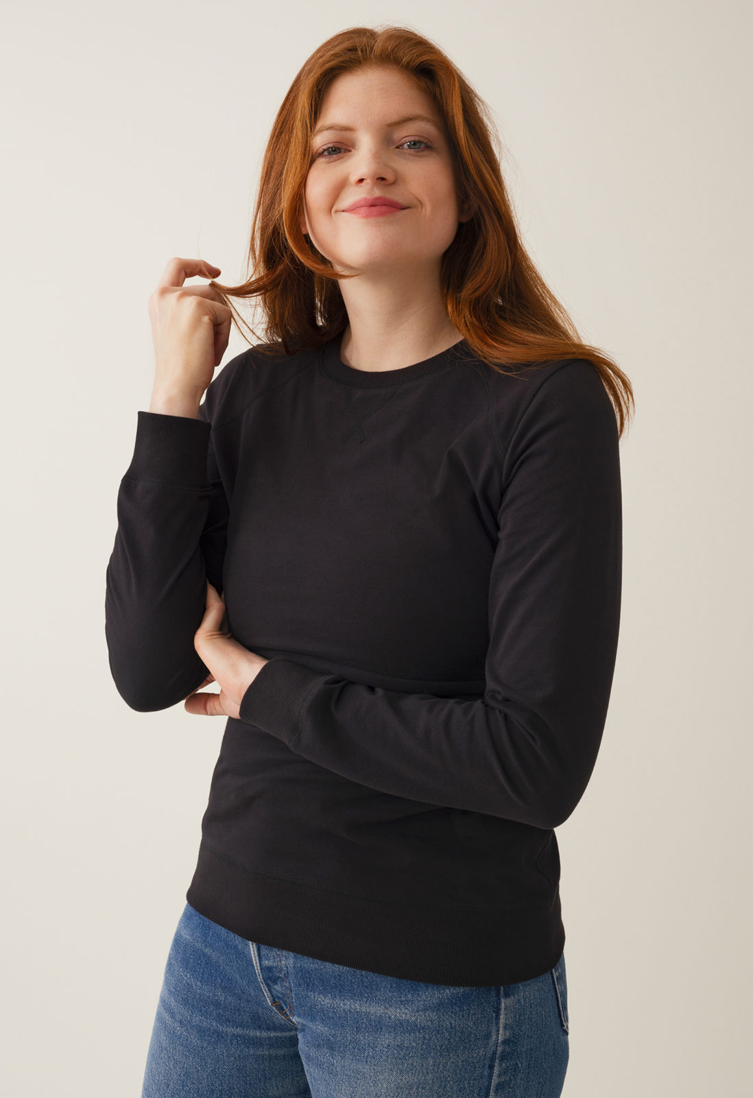 Our B.Warmer sweatshirt is as street-smart as it looks. With ribbed details, flatlock seams and our classic nursing access lined with soft fleece to keep your bust warm (extra important when you’re breastfeeding). A sweatshirt for all weathers, all the way through pregnancy and nursing.