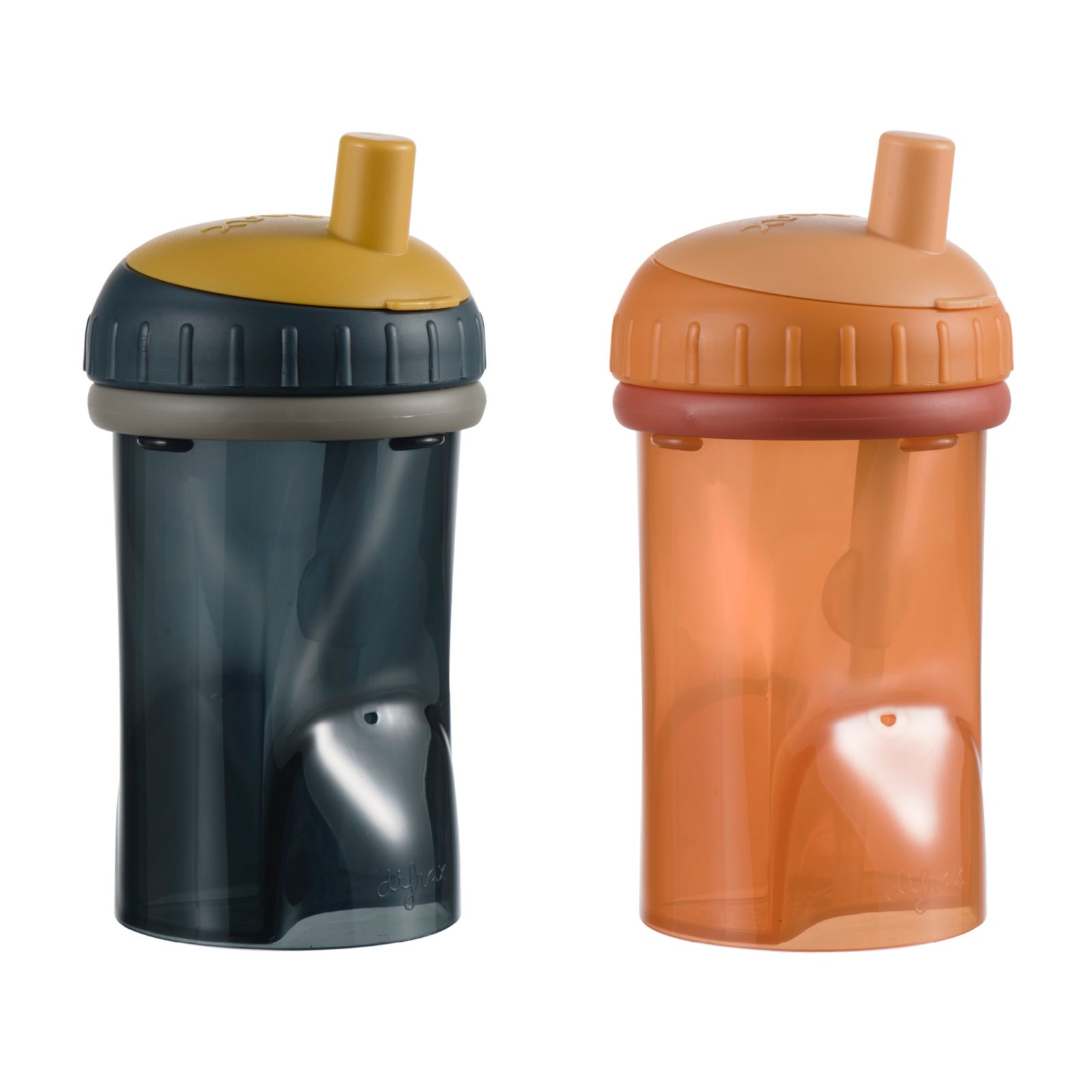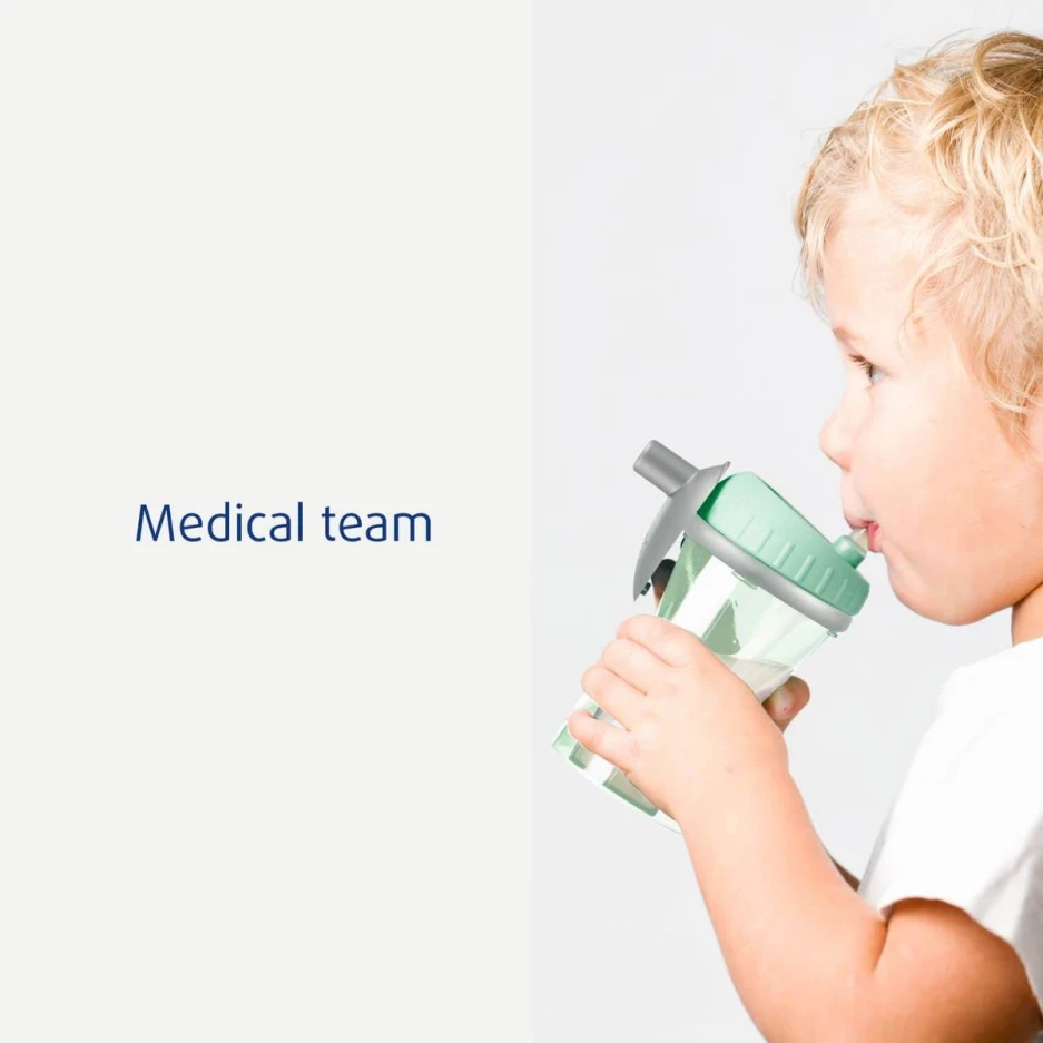 The cup has a soft coated straw spout with a specially integrated non-spill system. As soon as your child sucks on the straw, the straw opens and the juice flows through it. At times when your child is not sucking on the straw, the straw does not pass any liquid. The unique, patented Difrax cup with integrated non-spill straw has been developed in collaboration with a medical team.