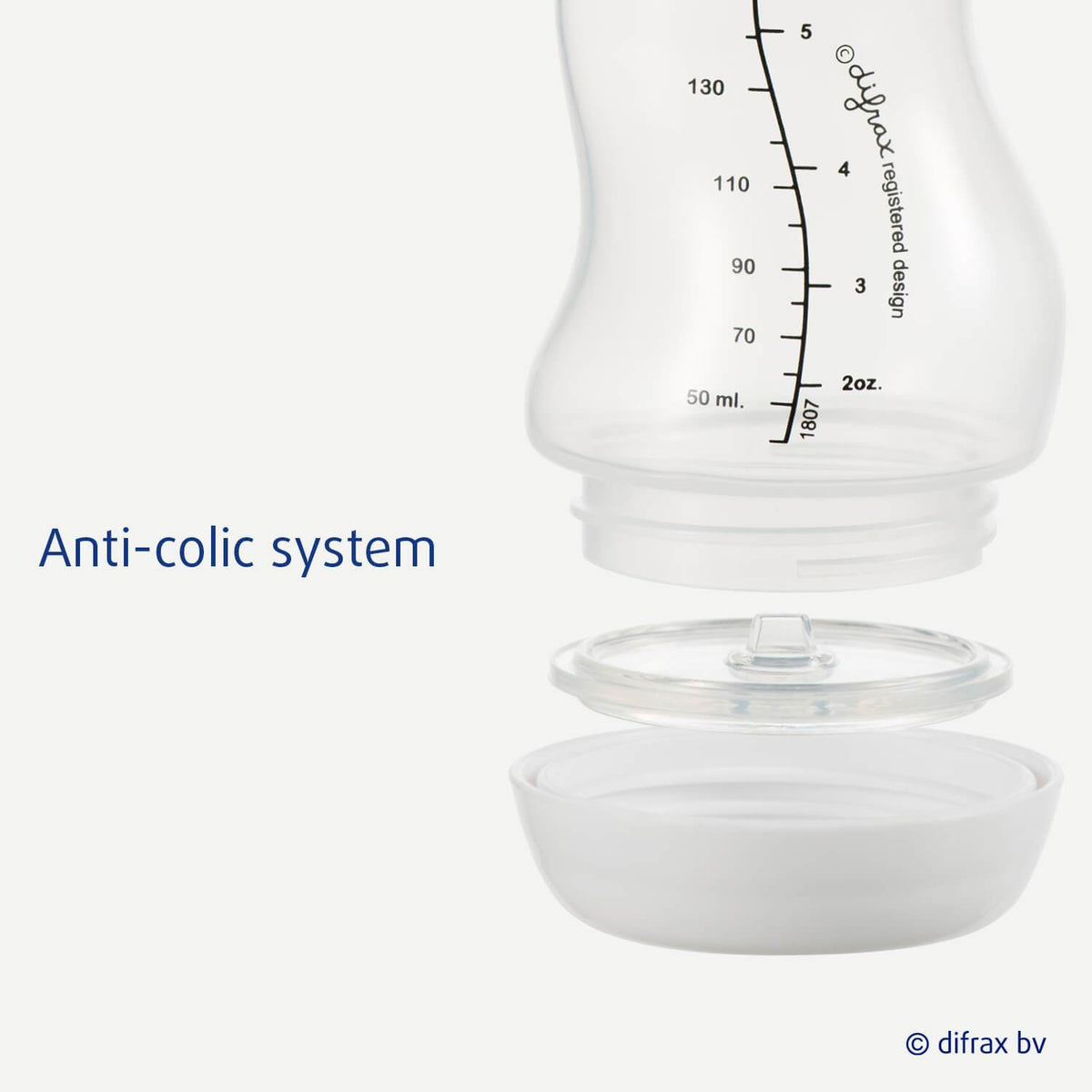 The Difrax S-baby bottle has been the most popular bottle amongst babies and parents due to the unique anti-colic properties. These two special features put together ensure a constant and regular flow of nutrition. The S-baby bottle anti-colic can be used from birth and is a well-proven combination with breastfeeding. The distinctive S-baby bottle can be used immediately after birth for both full-term and premature babies. With its unscrewable base the S-baby bottle is easy to clean and to fill with cubes of frozen breast milk. The anti-colic valve prevents vacuum suction and ensures a constant flow of nutrition allowing your baby to drink without swallowing air. This prevents chances of stomach cramps, burping and vomiting. The S-baby bottle is the first bottle that promotes a natural baby feeding position, while enabling parents to sit in a relaxed position! The Difrax S-baby bottles come in several trendy colours and sizes. Tip: before each use we advise you to check whether the tiny air hole in the center of the valve is open by squeezing it several times. https://difrax.com/pages/over-onsÞér gæti einnig líkað við