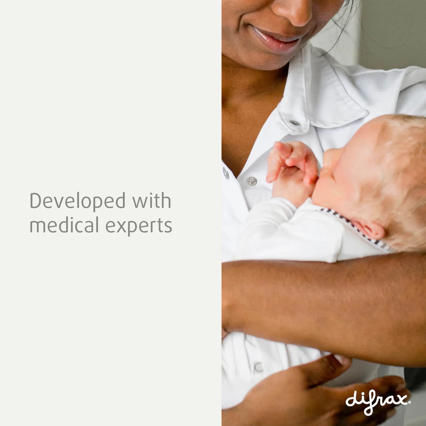 * Difrax vörurnar eru þróaðar í samvinnu við læknateymi sem m.a. samanstendur af barnalæknum, talmeinatæknum, tannlæknum, mjólkursérfræðingum og næringarráðgjöfum.