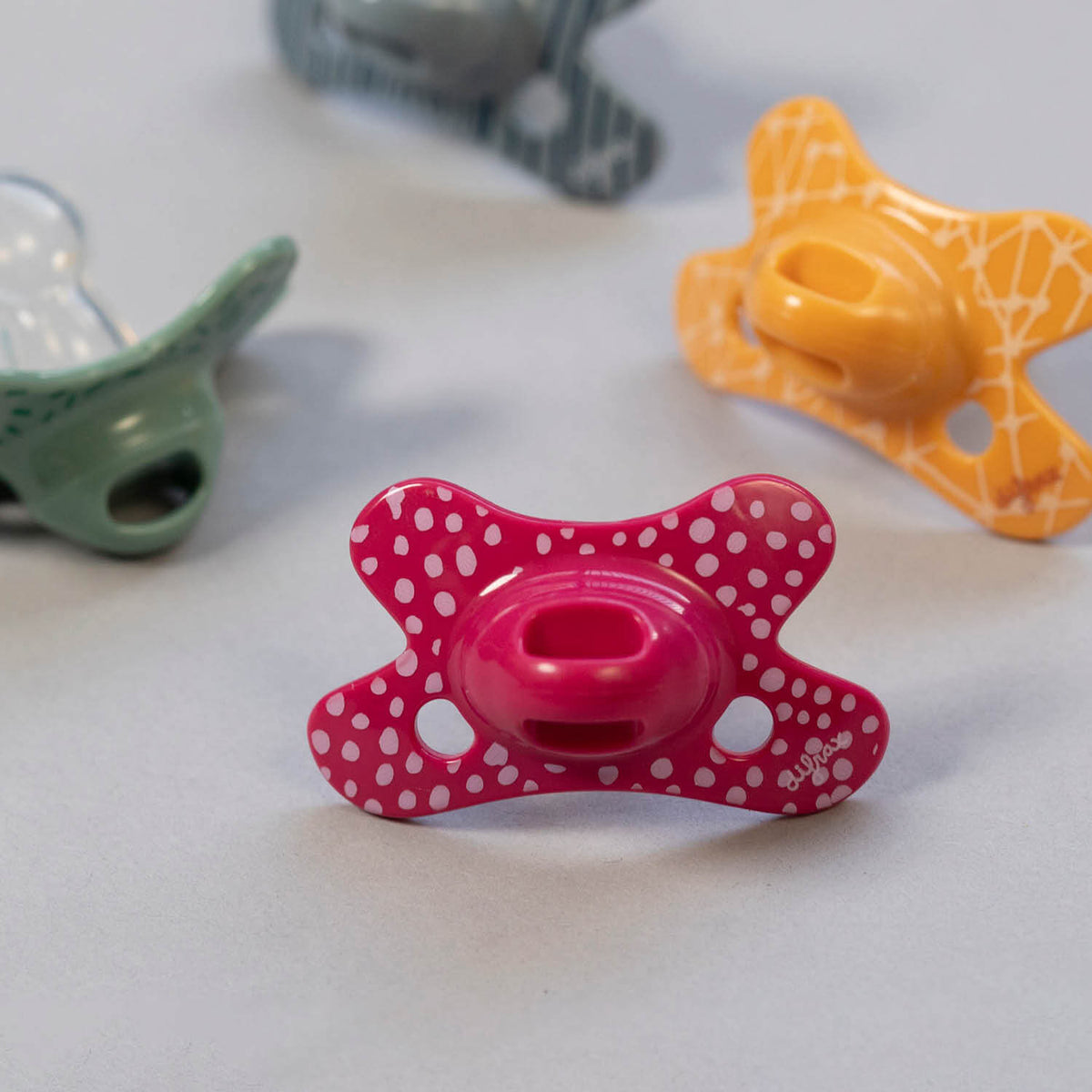 Difrax pacifiers are available in many fashionable prints and different sizes.