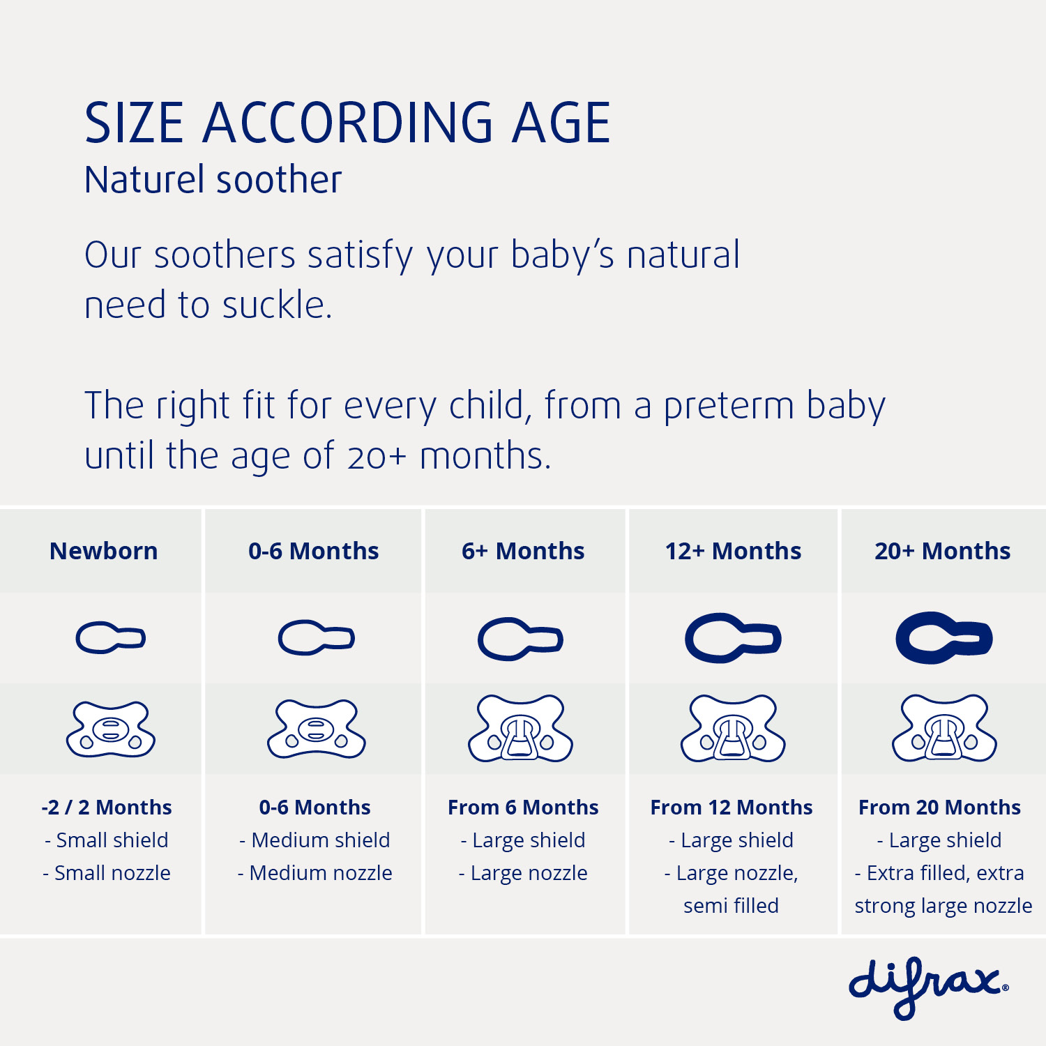 Difrax advises to replace your baby pacifier every six weeks. Perform a daily check on the dummy by pulling firmly at the teat, to ensure that it remains undamaged.