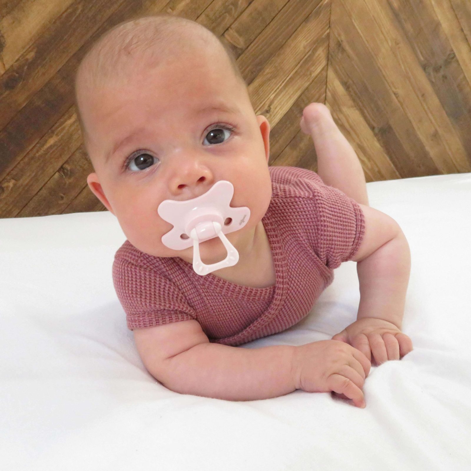 The unique pacifier has a butterfly shaped shield ensuring a perfect fit to your baby’s face. The recess for the nose enables your baby to breathe freely through the nose. Two airy holes on each side provide additional airflow, preventing skin irritation.
