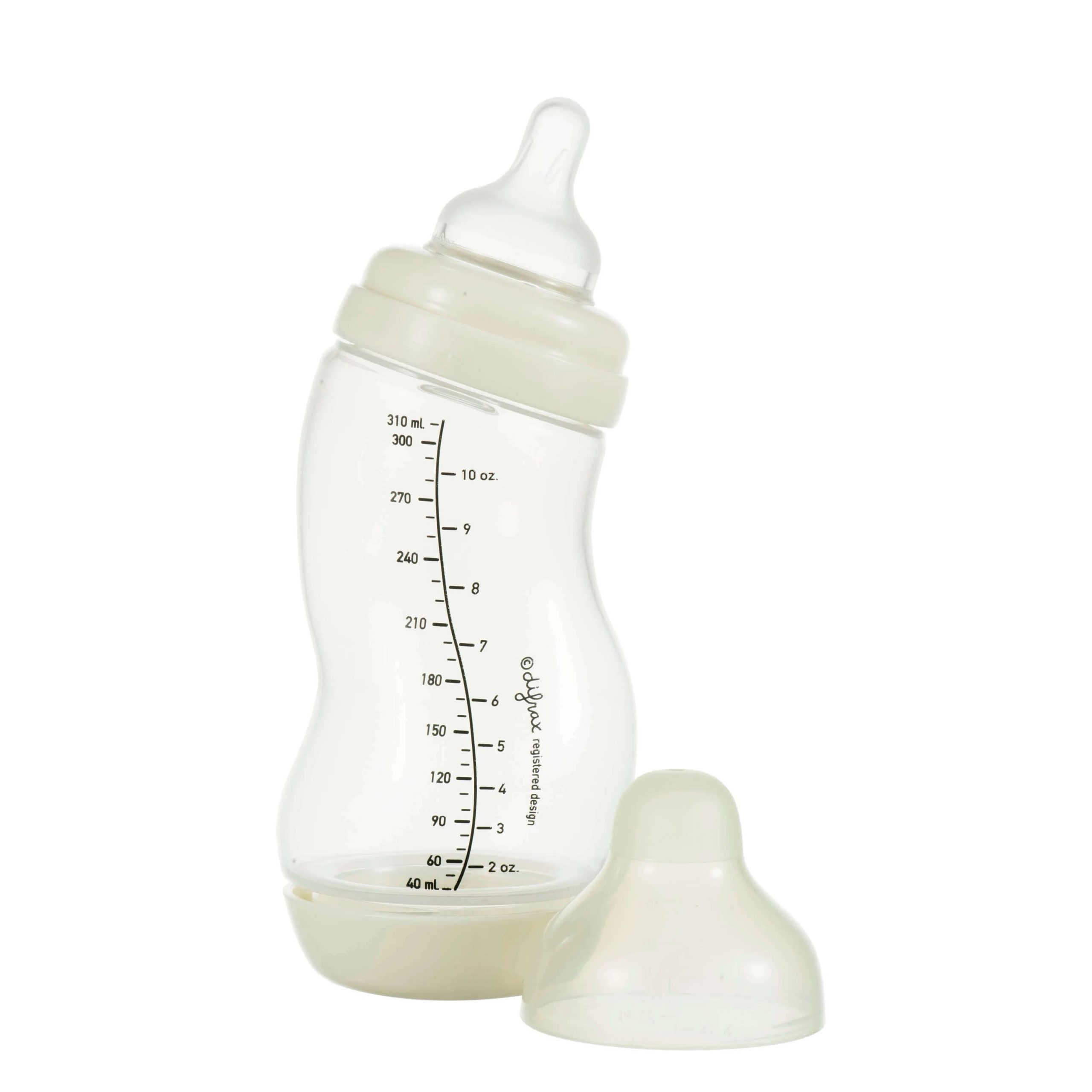 Difrax S-bottle 310 ml wide Ice. The Difrax S-baby bottle has been the most popular bottle amongst babies and parents due to the unique anti-colic properties. These two special features put together ensure a constant and regular flow of nutrition. The S-baby bottle anti-colic can be used from birth and is a well-proven combination with breastfeeding. The distinctive S-baby bottle can be used immediately after birth for both full-term and premature babies. With its unscrewable base the S-baby bottle is easy to clean and to fill with cubes of frozen breast milk. The anti-colic valve prevents vacuum suction and ensures a constant flow of nutrition allowing your baby to drink without swallowing air. This prevents chances of stomach cramps, burping and vomiting. The S-baby bottle is the first bottle that promotes a natural baby feeding position, while enabling parents to sit in a relaxed position! The Difrax S-baby bottles come in several trendy colours and sizes. Tip: before each use we advise you to check whether the tiny air hole in the center of the valve is open by squeezing it several times.