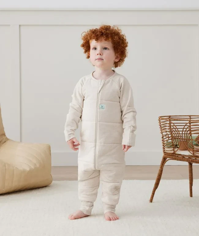 The 2.5 TOG ergoPouch Sleep Onesie will keep kids warm during sleep in room temperatures of 17–21°C / 63–70°F. The TOG rating means there is no need for additional blankets in the cot when using this product, making it a safe-sleep option. For toddlers who are ‘blanket-training’ in a big bed, the onesie will keep them warm if they kick the blankets off. If using a 2.5 TOG or 3.5 TOG for blanket training, we suggest a light blanket on top to prevent overheating. Parents can follow the FREE room thermometer and What to Wear guide provided with the product, to layer appropriately underneath to keep their child warm. We recommend pairing this pouch with one of our TOG-rated Layers underneath. You can also wear a pair of socks for extra foot warmth on chilly nights.