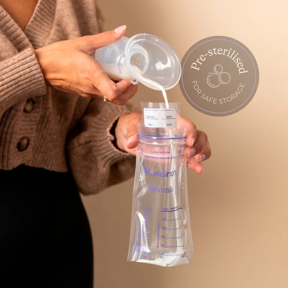 Frystipokar fyrir brjóstamjólk með tvöföldum rennilás til að tryggja lokun. Eru með sérstökum flipa til að skrifa á dagsetningu.
