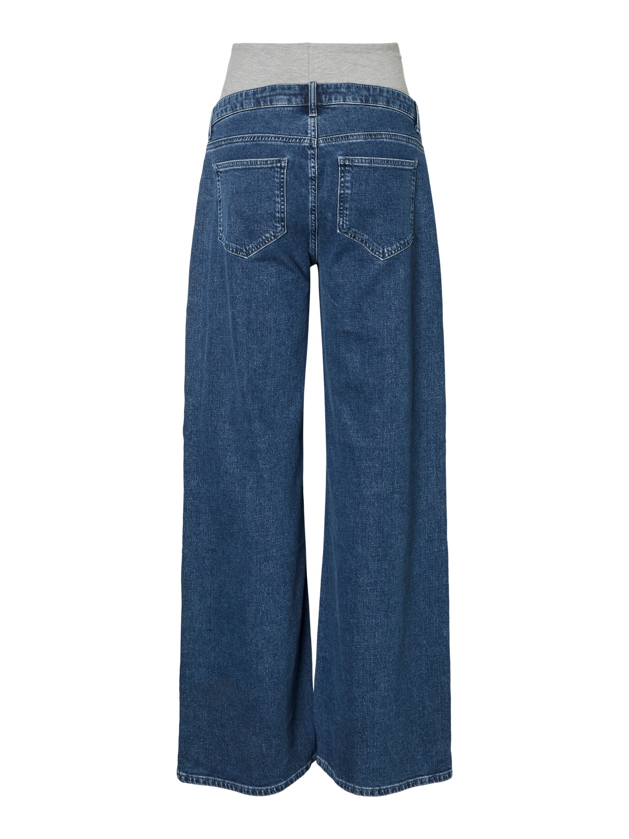 Stay cool in a pair of maternity jeans designed to fit through all stages of pregnancy supporting your bump with an elasticated bump band. – Product Type : Wide-leg maternity jeans – Closing : Button and zip fastening – Pockets : Back pockets, Front pockets – Waist : Mid rise – Extra details : Belt loops, Supporting bump band for extra comfort, Contrast stitching, Elasticated waistband, Bump band over the bump for extra comfort and support – Wash/Finish : Gently washed dark denim look – Fit : This pair of jeans has a trendy wide fit