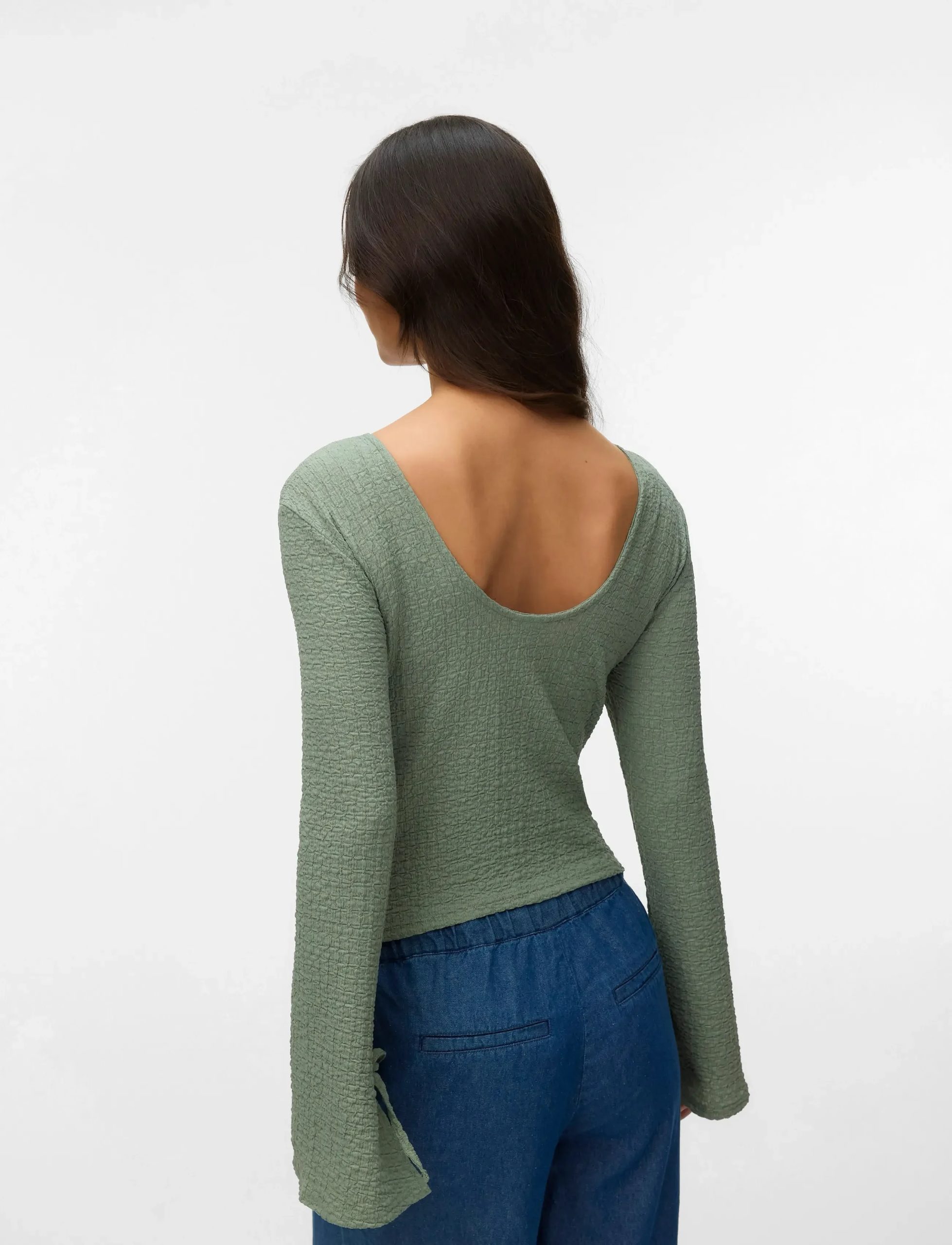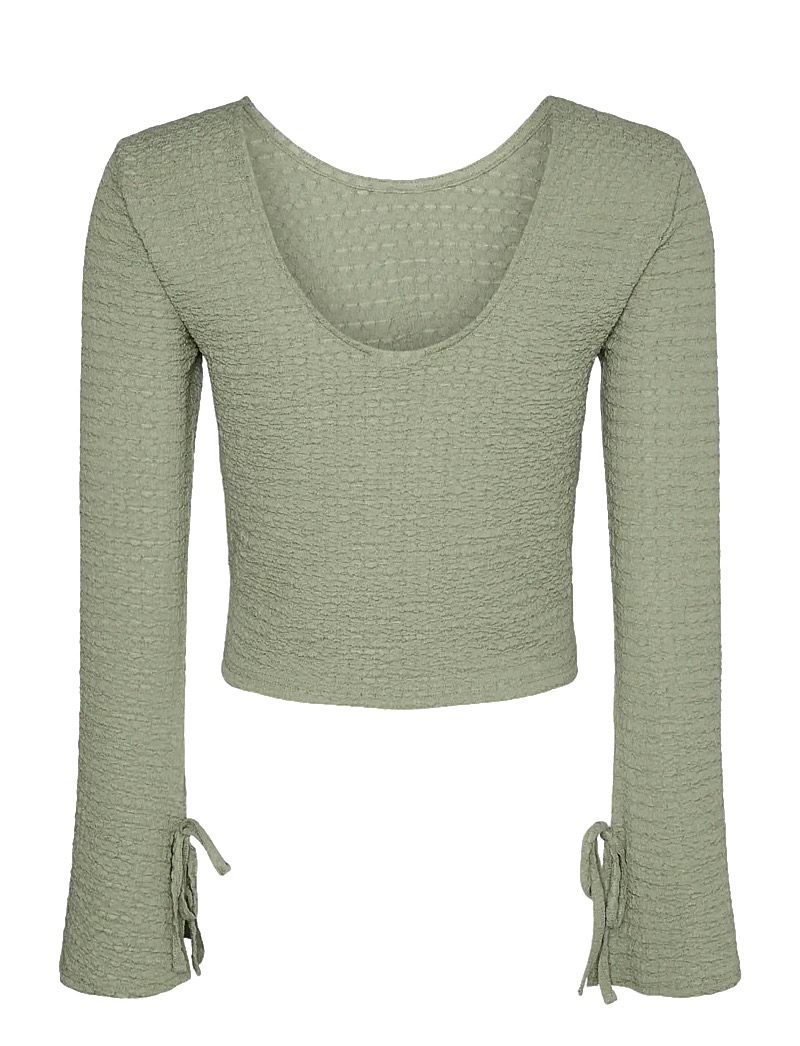 Þessi síðermu crop-top er með böndum á ermum og skapar stílhreint yfirbragð. Mjúkt og áferðarfallegt efni gerir flíkina einstaklega flotta.