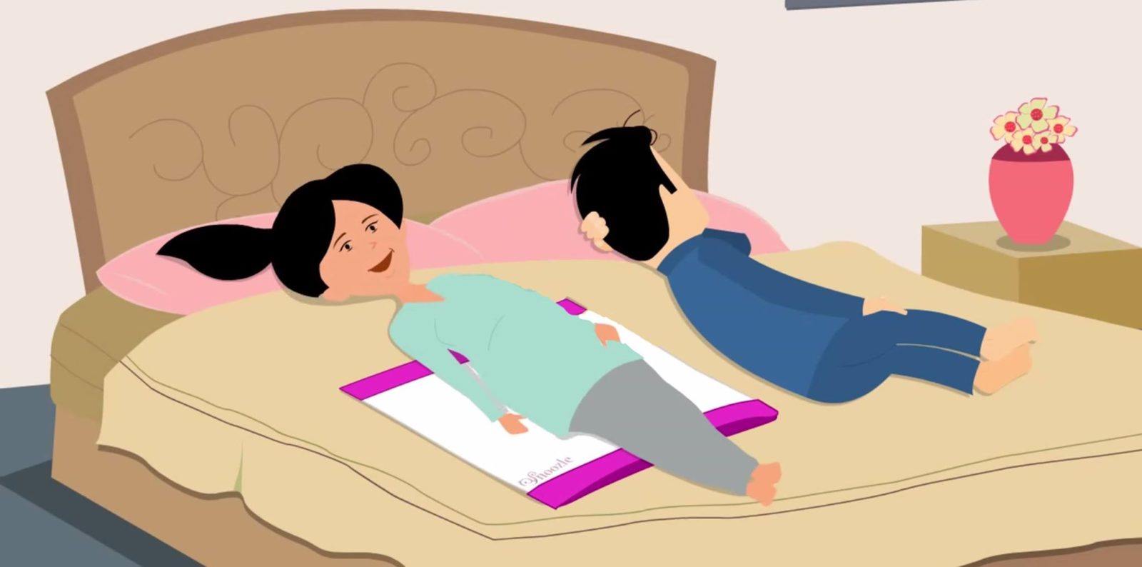 Snoozle snúningslakið er ótrúlega einfalt í notkun. Þú skellir því einfaldlega á þinn hluta rúmsins þannig að það sé um það bil undir baki og rassi, leggst ofan á það og snýrð þér.